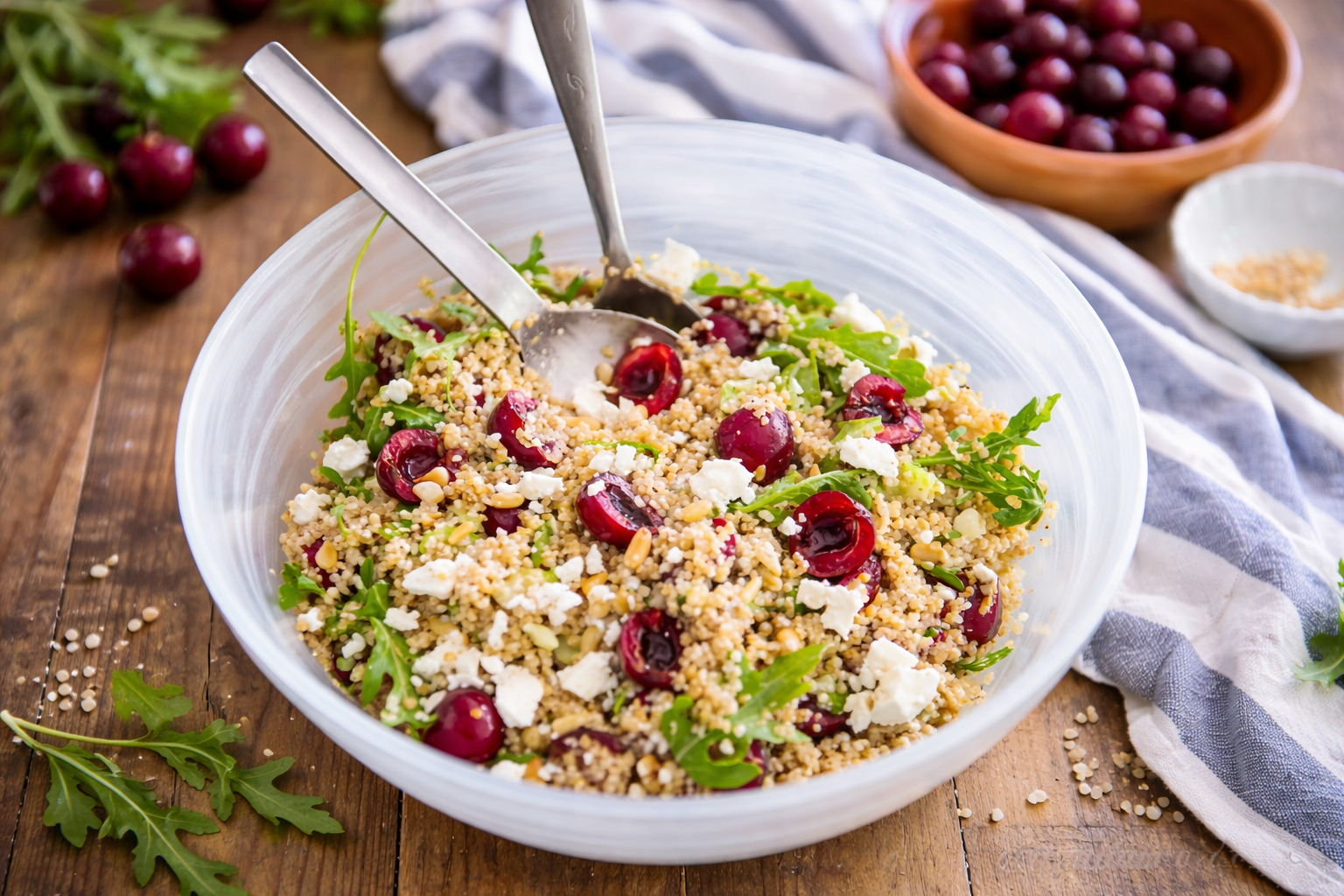 Bulgur Cherry Walnut Salad is a wholesome dish made with soaked bulgur wheat, fresh cherries, roasted walnuts, greens, and homemade vinaigrette. It offers a perfect balance of sweet, nutty, and tangy flavors.